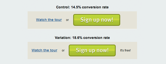 In this experiment, two simple words increased the sign-ups on this button by 28%, demonstrating the significance of measuring call-to-action buttons. Apparently, even the smallest alterations can have surprisingly effective results. The two magic words in question? “It’s Free!”