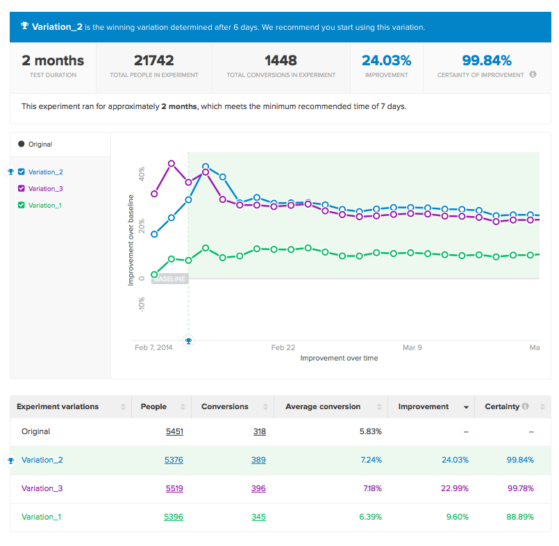 Google Analytics is a complete A/B testing platform that utilizes Google’s manifold approach. It allows you to split-test up to 10 versions of each page and delivers a page at random to customers via a separate URL. You can also choose the objective you would like to test and get updates via email on how the experiment is performing.