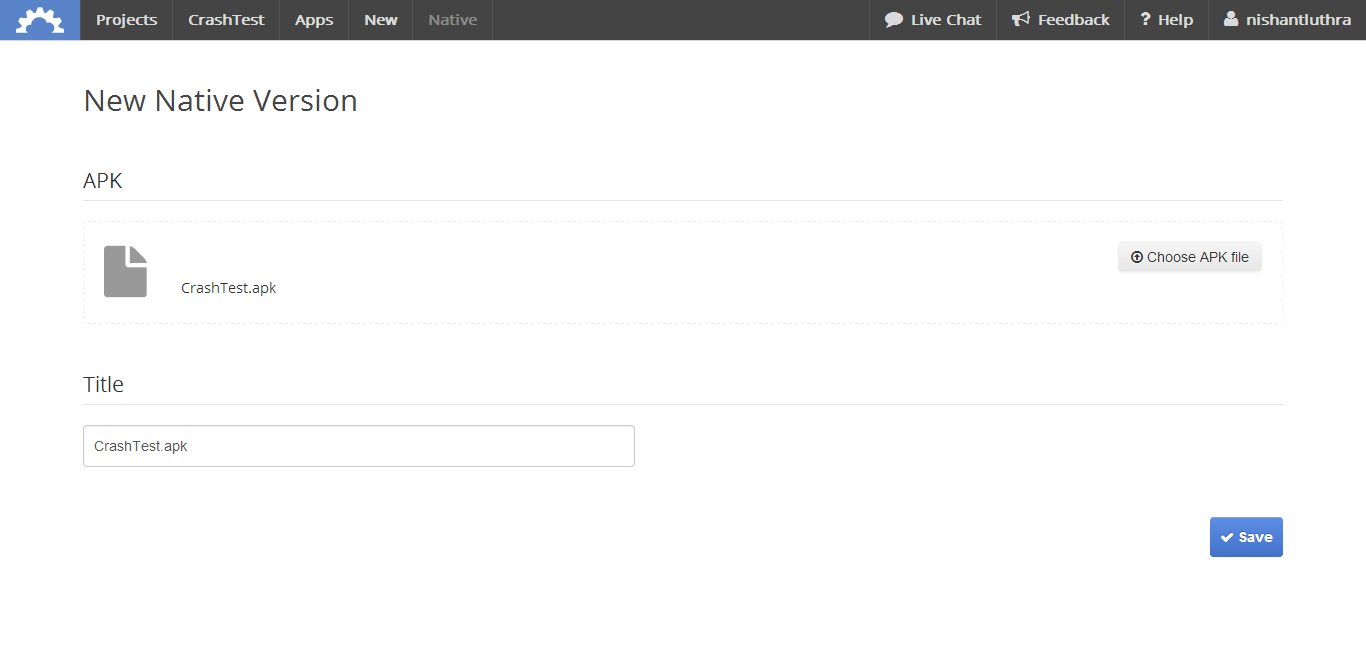On the next screen, click Choose APK File and browse for the app file you want to upload to the system. In the tutorial we have choose CrashTest.apk .