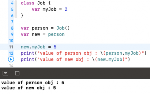 Now change the job of new to 5 and then print the job of both the instance. Both will print the number 5.