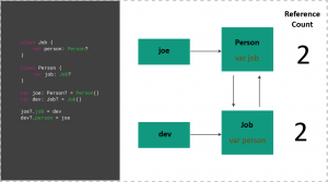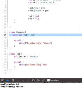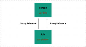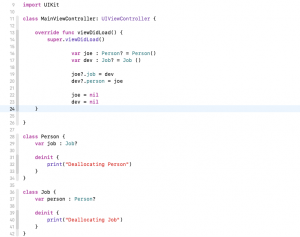 but still, there no deallocation print statement in console and Job and Person Class can’t be removed from memory because of the job and person variable point to them.