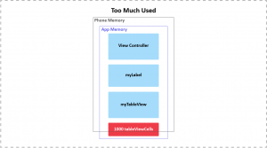 We have viewController, label or a tableView that loaded in memory and for some reason, if you forgot to use dequeuereusablecell the load all cells in the array, so use so this type of things can cause your app memory problem.