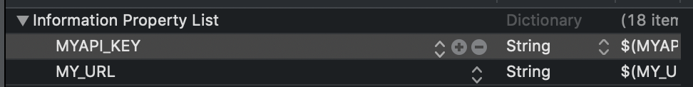 -We use MY_URL and MYAPI_KEY in our configurations file and Xcode did not include them by default in Info.plist file. So, add 2 new entries in info.plist.