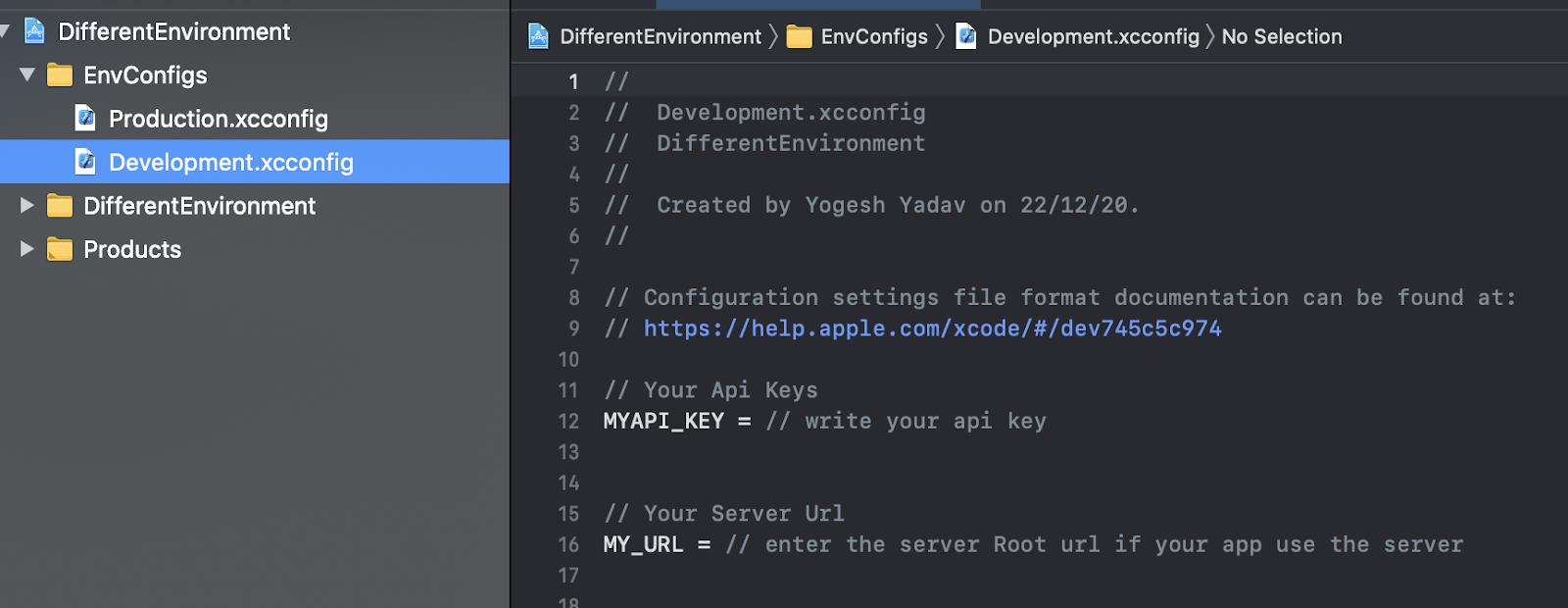 Step 3- Create a new folder “Configs” and create new .xcconfig files For development and production.