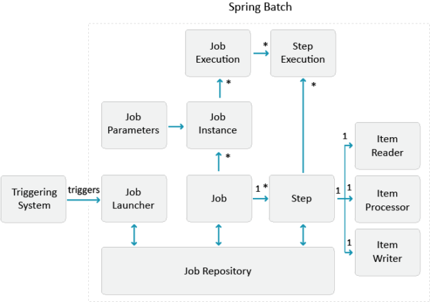 Spring Batch Spring Batch is a processing framework designed for robust and parallel execution of multiple job. It follows the standard batch architecture in which a job repository takes care of scheduling and interacting with the job.  Spring Batch Job Spring batch job reads input data, processes the input data, and writes the processed data Continue Reading »