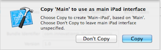 4. It will prompt you an alert Copy “Main” to useInnovationM-iPhoneOnly-To-Universal-App as main iPad interface. It is prompting to use the name of the Storyboard (Main here) to create another iPad group. Normally, you would select to copy.