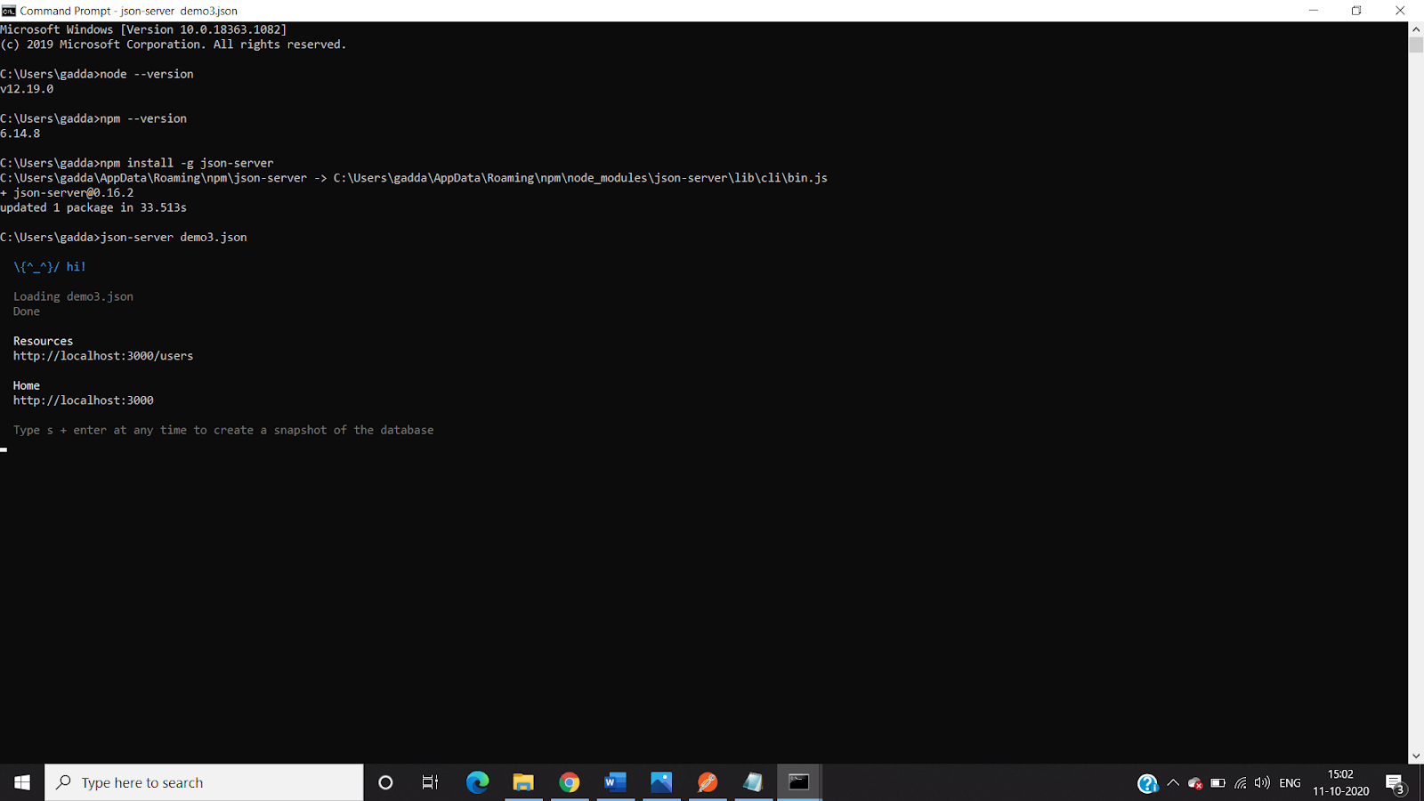 3. We need to have a server so open the command prompt and install json-server using the following command :