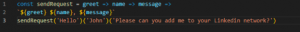 We have created a sendRequest function that requires only one argument, greetings, and return the person’s name and the message we want to send to the user. Then, when we asked for a job, he released a message.