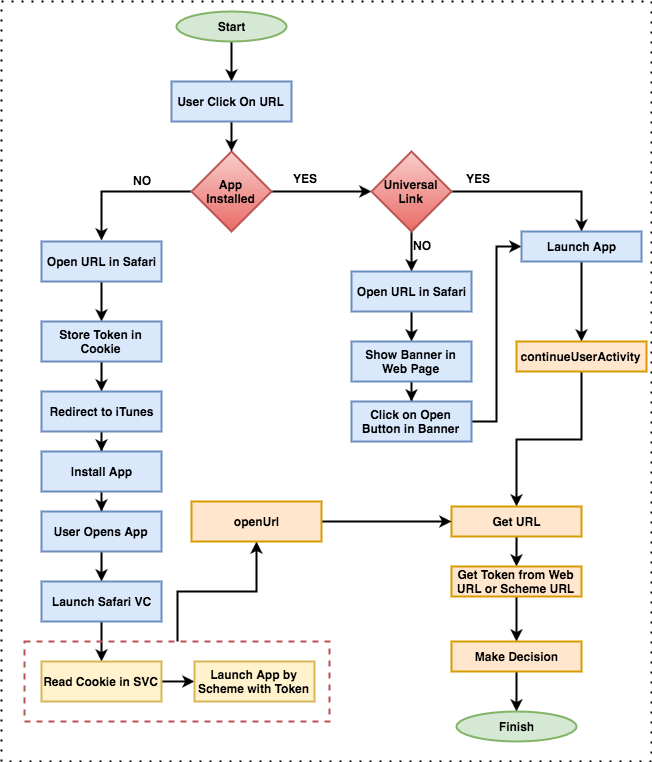 Unitl now we have two methods to open the application and getting the URL when application is installed on user’s device, But what if user click on link and the application is not installed on device. It will be opened on web browser, user will install the application but when he/she launches the application we will not get any url on which we can take decision to land him/her on the correct page. For this problem we have to implement some mechanism by which we can share the url between the web browser and the Mobile Application.