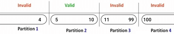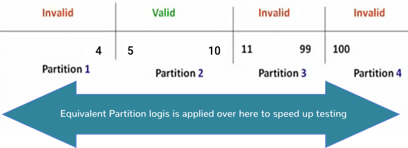 Example: We have a text box in which only values 5 to 10 are considered valid, while values >=11 or values <= 4 are considered to be invalid.