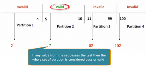 Checking all the values, in this case, is very difficult since the number of test cases would be in the hundreds. Here we use the equivalence partitioning where we divide the data set into different partitions.