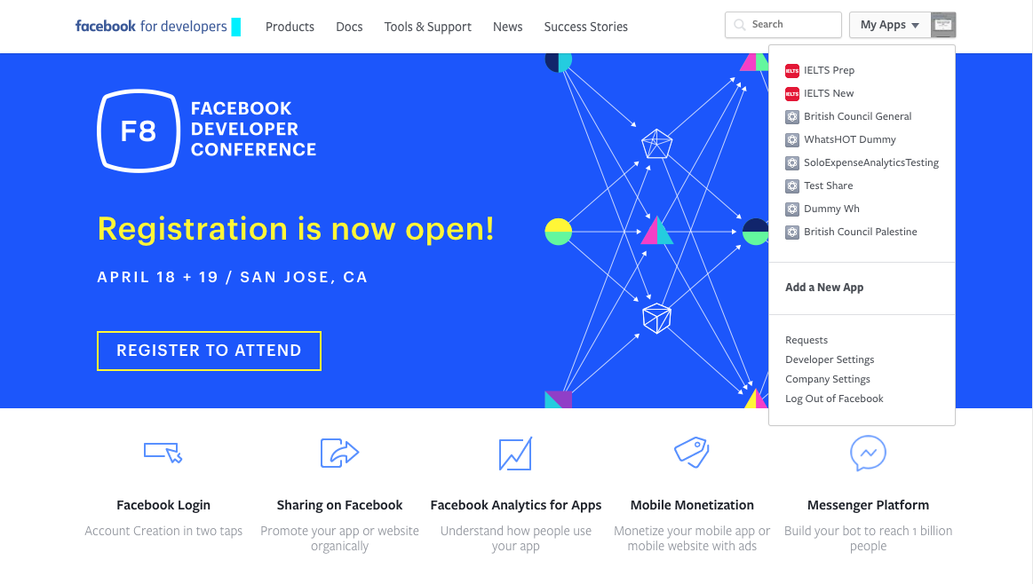 • Go to https://developers.facebook.com and login with your account. It will open Facebook dashboard.