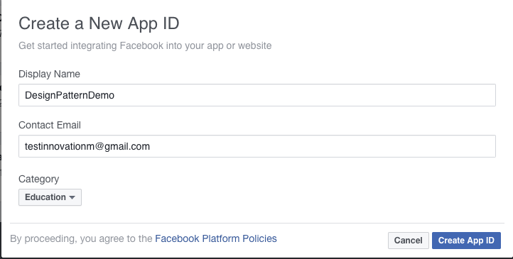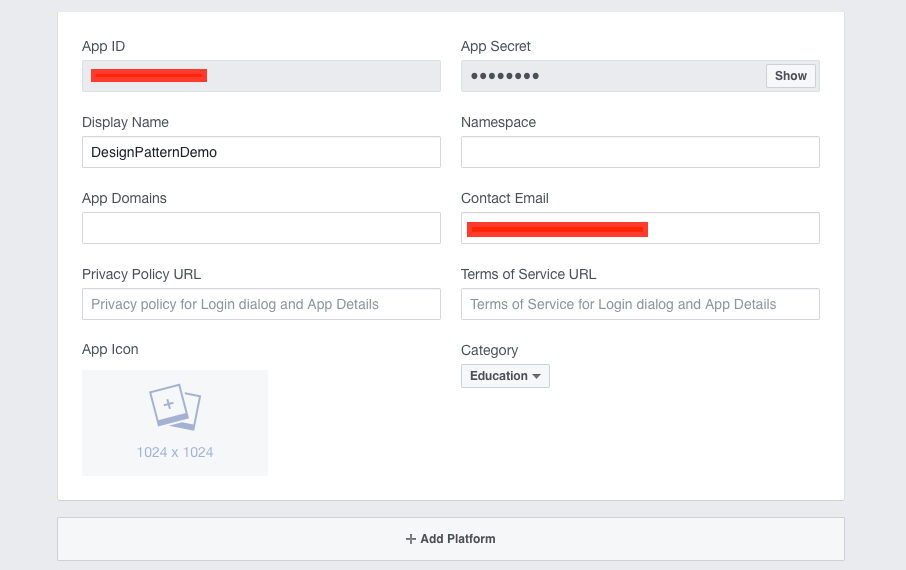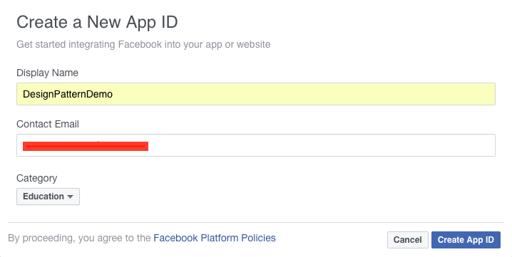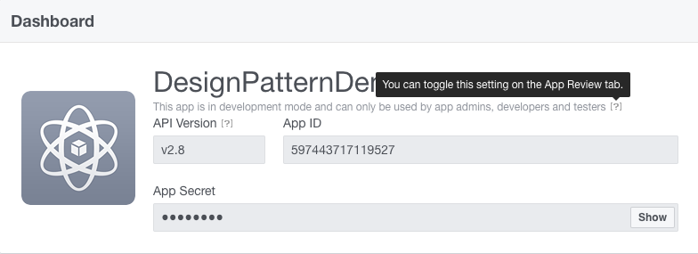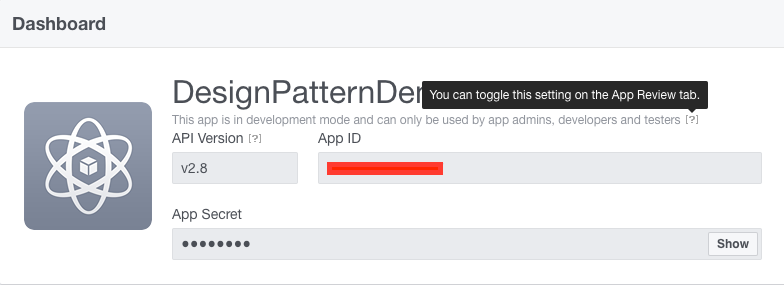 Replace {your-app-name} with the display name you specified in the App Dashboard (DesignPatternDemo in this case)