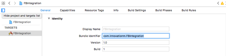 So, go back to your Xcode project and click on the project target on the Project Navigator pane, and under the General tab copy the value of the Bundle Identifier field.