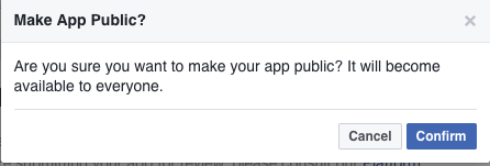 For making it publically accessible to all users, click on the question mark below the app name and toggle the button for making it public.FbIntegration7