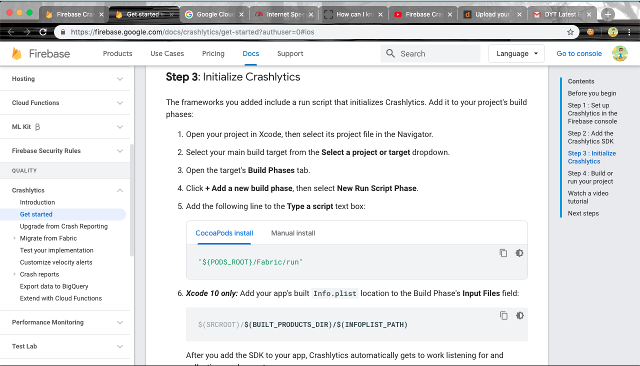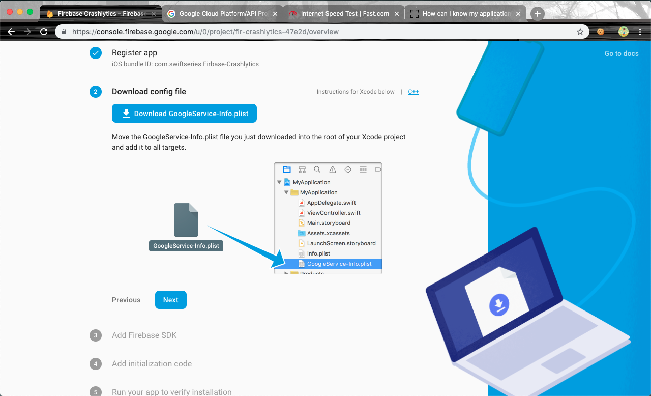 Step 9:- Now again go on the browser and click on next after downloading google info plist file. Now it will say to install a pod which we have installed already so, skip this step and click on next.