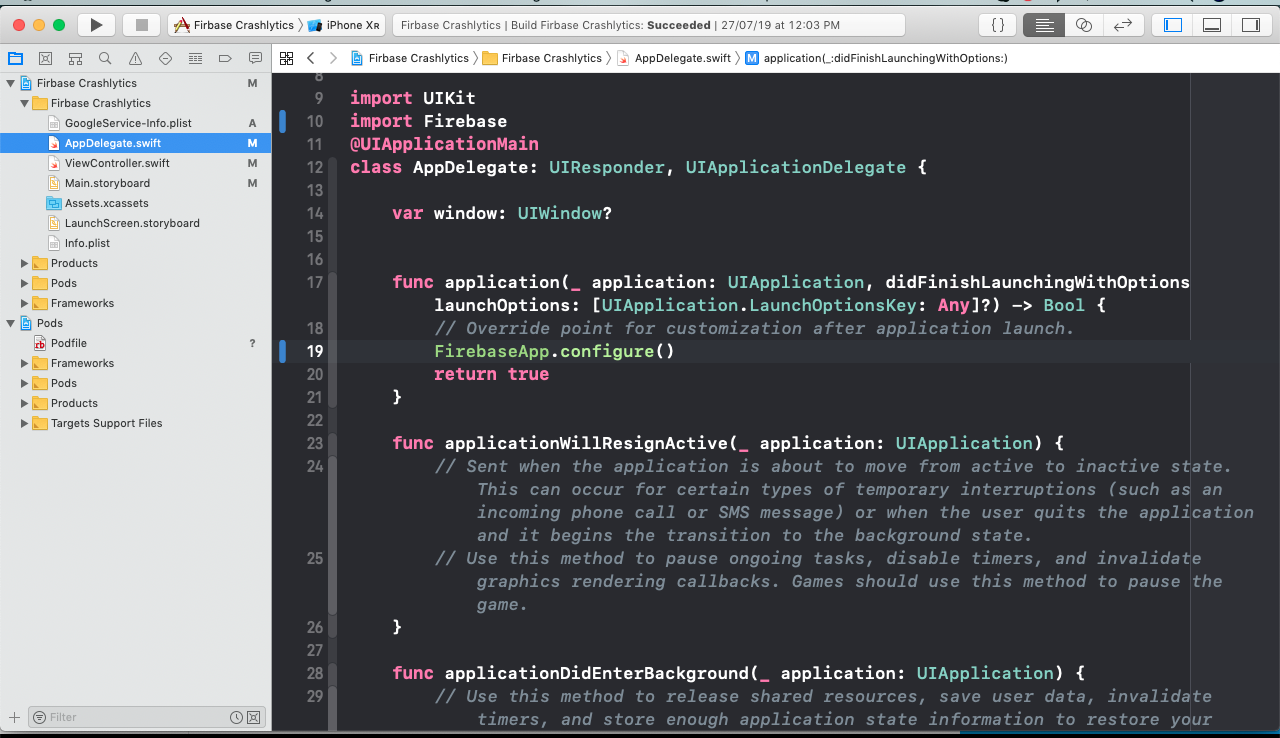 Now it will ask to add Firebase initialization code into our app delegate file as given below:-