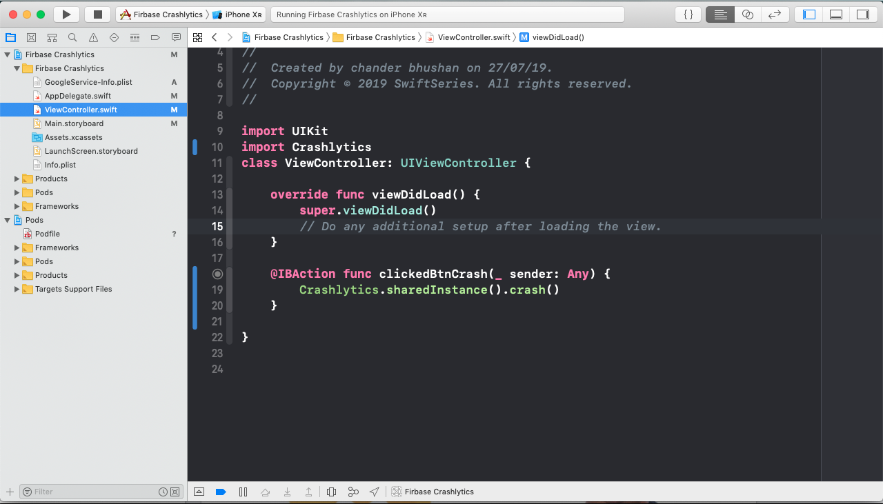 Nowadays, Firebase Crashlytics is a very important part of our projects to monitor crashes of our applications that may be an android or iOS application. For the time being it is an unbeatable tool to log your day to day crashes for each user of your application. It provides good documentation and step by step guide to integrate your application with Firebase Crashlytics. In other words, it is easy to integrate within a short amount of time. It seems like a plug and play tool and provides a good User Interface Dashboard to look at past and current crashes of your application. You can filter out crashes as per your requirements as it provides different kind of filters like filter by devices, OS, date, time, etc. So, let’s get started with the integration of Firebase Crashlytics in our iOS Swift Project.