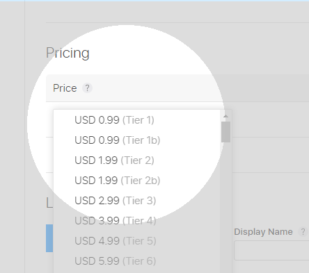 - Pricing Tier : Choose The Price Tier from dropdown. (Note: You are bound to choose from the list. You can’t creat amount as per you wish. You’ve have to choose from the list)