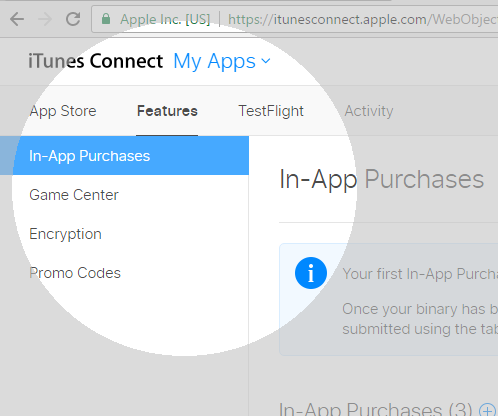 Get in Features Tab > InApp Purchase section