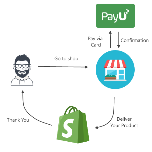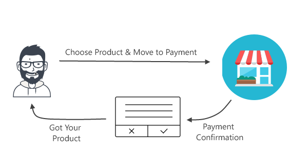 Fig: This is Shop A where you’ve to move PayU (Shop-B) for Payment and then he confirms about the payment. And, then he brings his purchased grocery back.