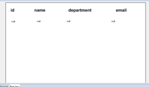 In this case we are manually writing the jrxml code . In this report design we are taking four string fields as id , name , department , email .