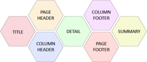 A jrxml report template is consist of the following parts shown in the below figure.