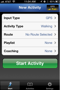 2. After sign up for the app, you can start capturing GPS log. Press ‘Start Activity’ and walk around under an open sky.