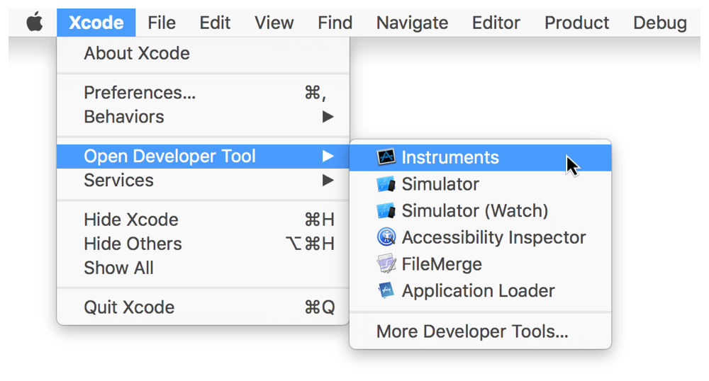 2. Choose Xcode > Open Developer Tool > Instruments.