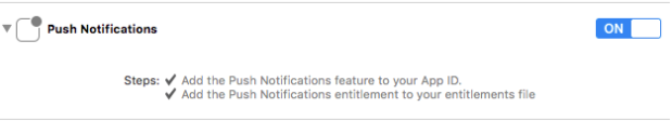 2. To Enable push notification go to App Settings -> Capabilities -> Push Notification and turn the switch on. enable_push_noti