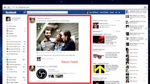 - Middle section contains all the news feed that includes profile changes, upcoming events, and birthdays, among other updates.
