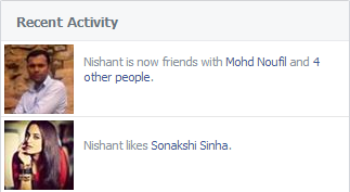 Action Stories – Under the section titled “Best approaches to implement stories” on Facebook developer site, it is recommended that those things are so much frequent and occurring so many times in day then we should use “Action stories” (eating, watching,like, play , comment, travelling, etc.). Which will present in my Recent Activity as well as in other’s Ticker.