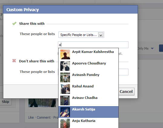 2. Sharing with a Group (My Few Friends) – Use the Custom option to share content with a specific number of people.