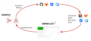 - The scanner posts the results to the SonarQube server which provides feedback to developers through the SonarQube interface, email, in-IDE notifications (through SonarLint), and decoration on the pull or merge requests