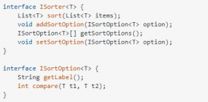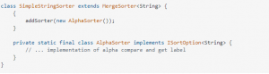 A simple framework is used that would include multiple sort options which are provided to the sorter for sorting the overall list.
