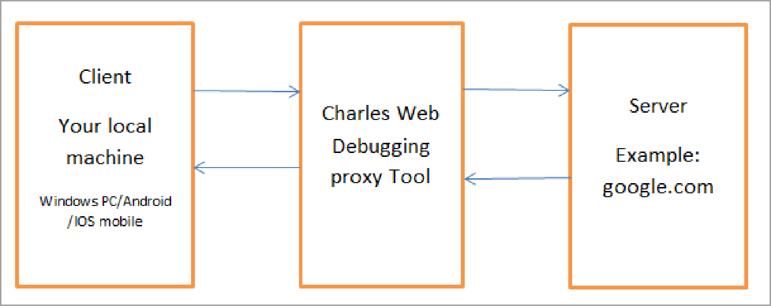 eg: Let’s say you’re searching for something on Google, Charles acts as a mediator between you and Google and helps to monitor the server logs.