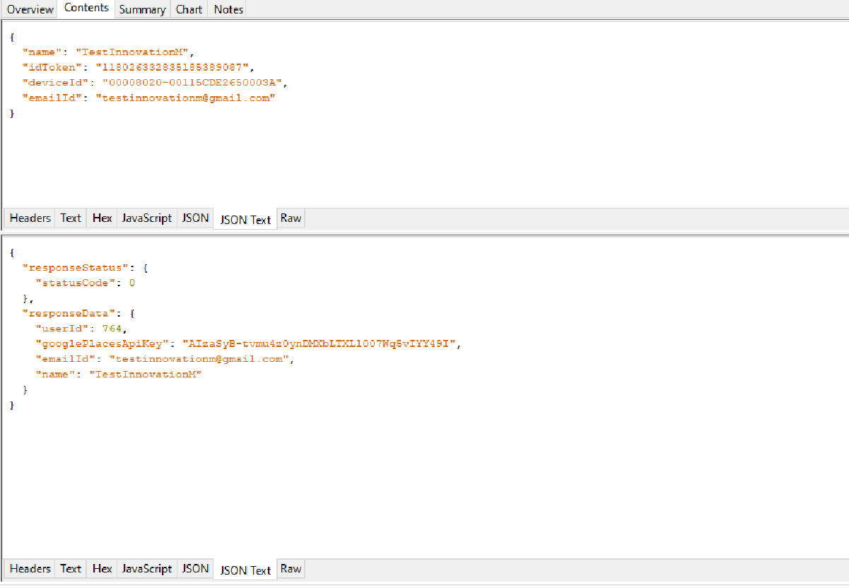 Now against each API selected it shows the information such as status code, request data, response data and many others.