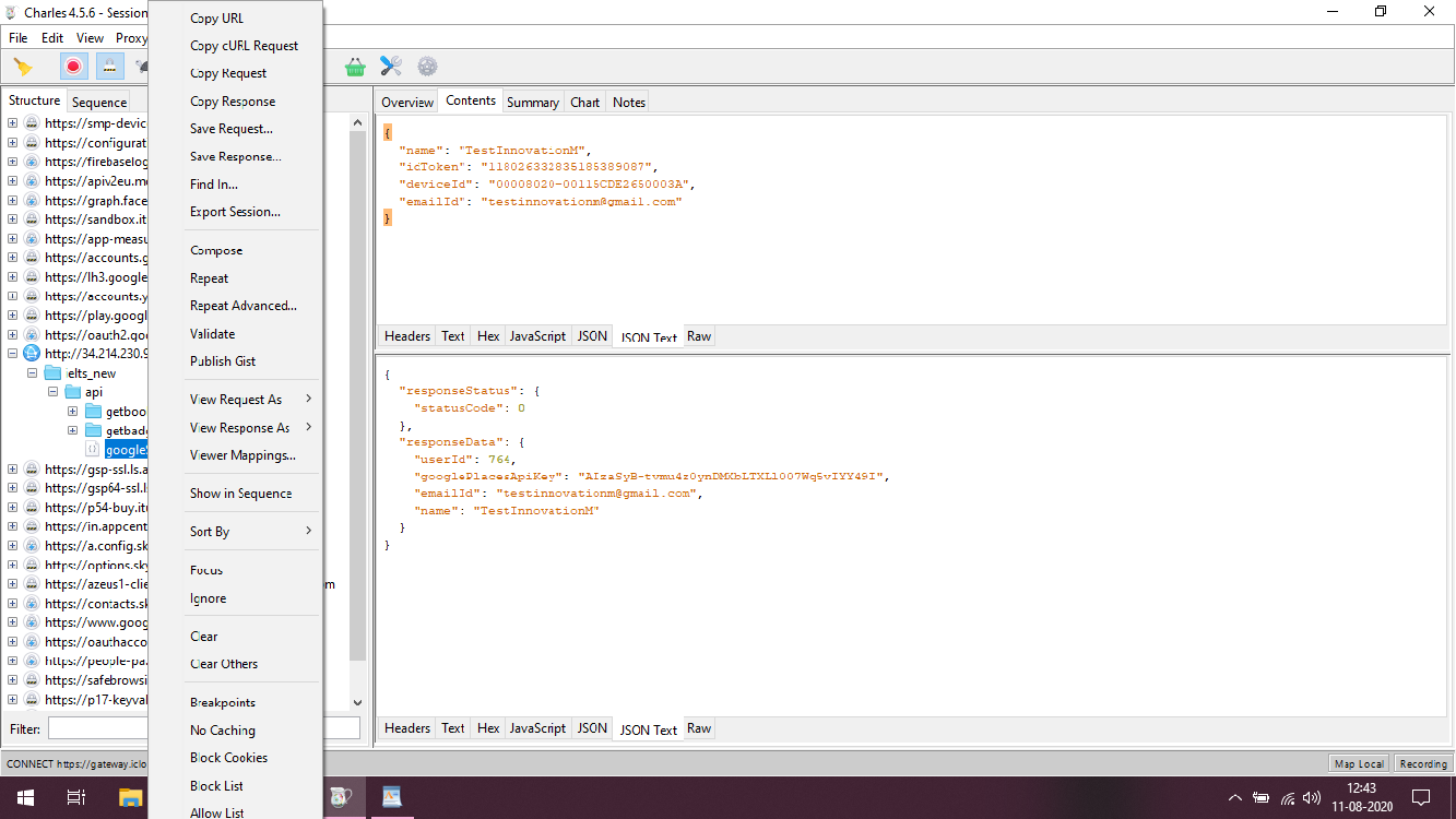 Record session: Click on start recording and Charles tool will start capturing traffic by itself of the connected device showing you all the services being called as you keep using the app.