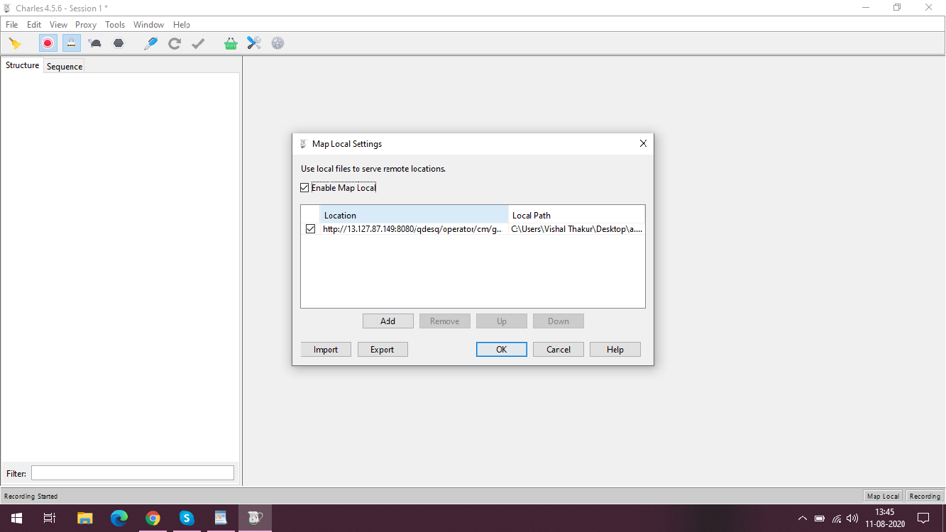 Map Local: Let’s say you want to change something in the request and check how it’ll affect your application. One can simply copy the request data, save it in a .json extension. Now open Charles > Tools > Enable Map Local. Now it’ll open something like