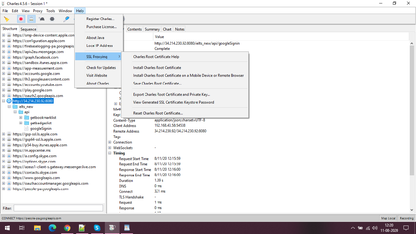 - Install the Charles certificate on the device where you’re going to perform testing. If it is your local computer, Open Charles tool > click on Help > click SSL Proxying > Install Charles certificate(Might get a warning that it is not a trusted agent). If testing is to be done on a website only, this all set up is required, further steps include setting it up for mobile testing.