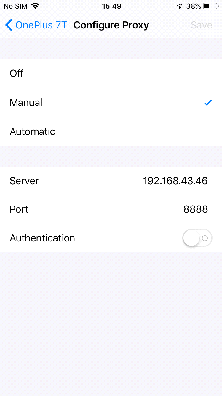 - Now if all the above requirements are met, go to the wifi settings and tap on the connected wifi network. Find proxy which by default is set to “None”. Change it to “Manual” and input Proxy Host name(on android) / server (on IOS) and Proxy port.